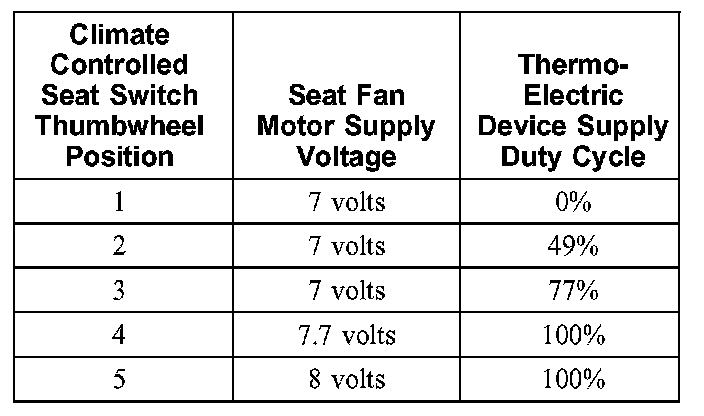 - In HEAT mode, there is no linear correlation between the seat fan motor speed and the TED supply voltage. The CCSM will independently vary the fan speed and the TED supply voltage in order to reach and maintain the temperature determined by the switch setting.