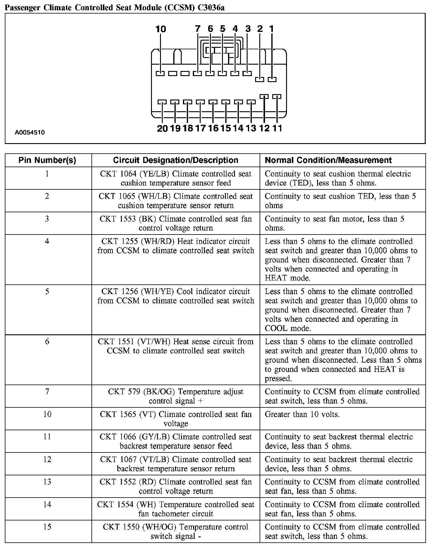 Passenger Climate Controlled Seat Module (CCSM) C3036a (Part 1):