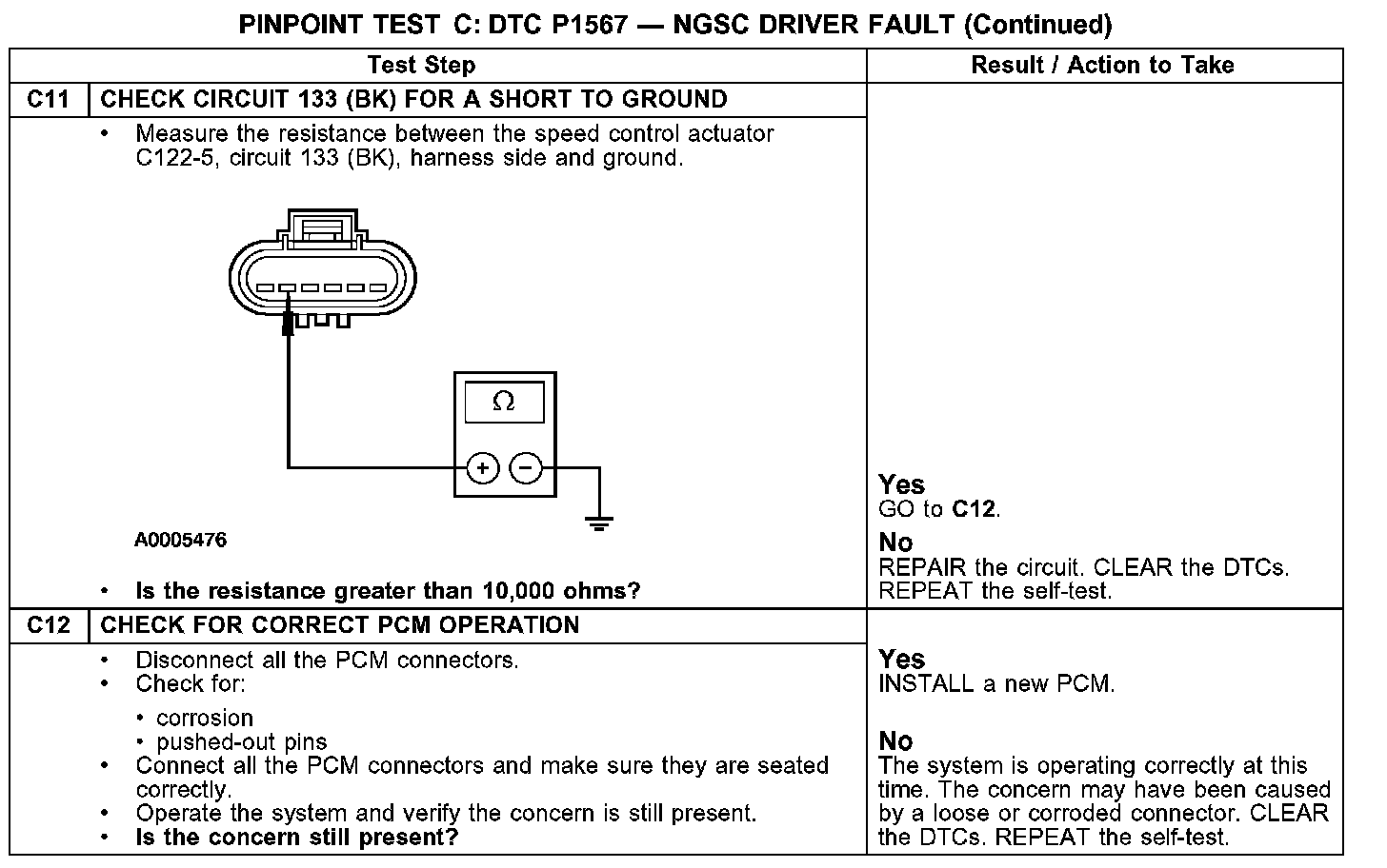 Test C: DTC P1567 - NGSC Driver Fault