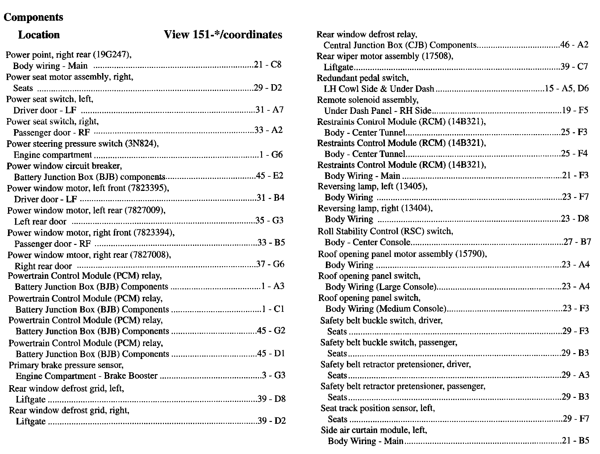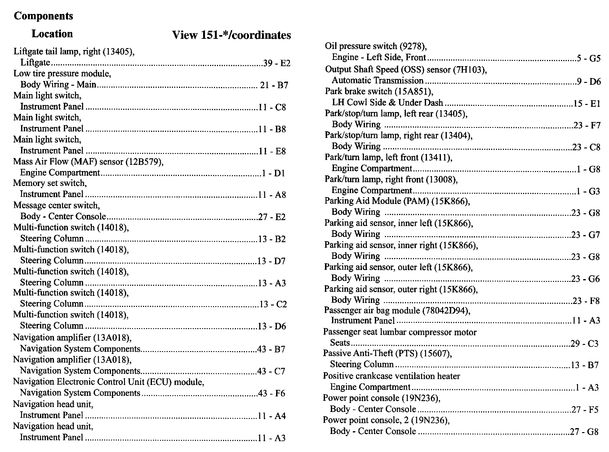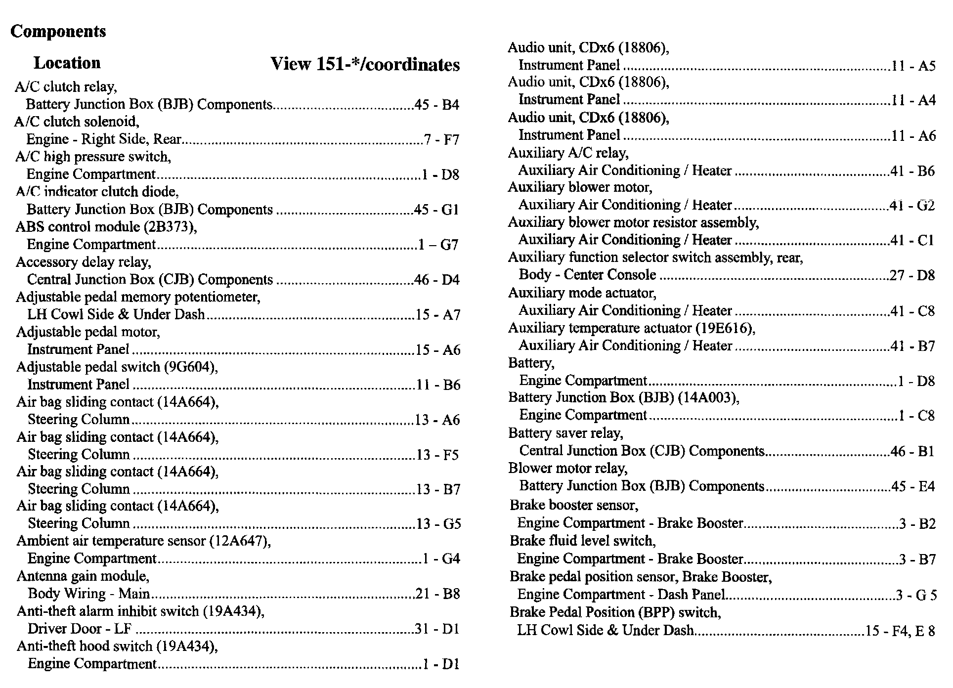 Component Location Index