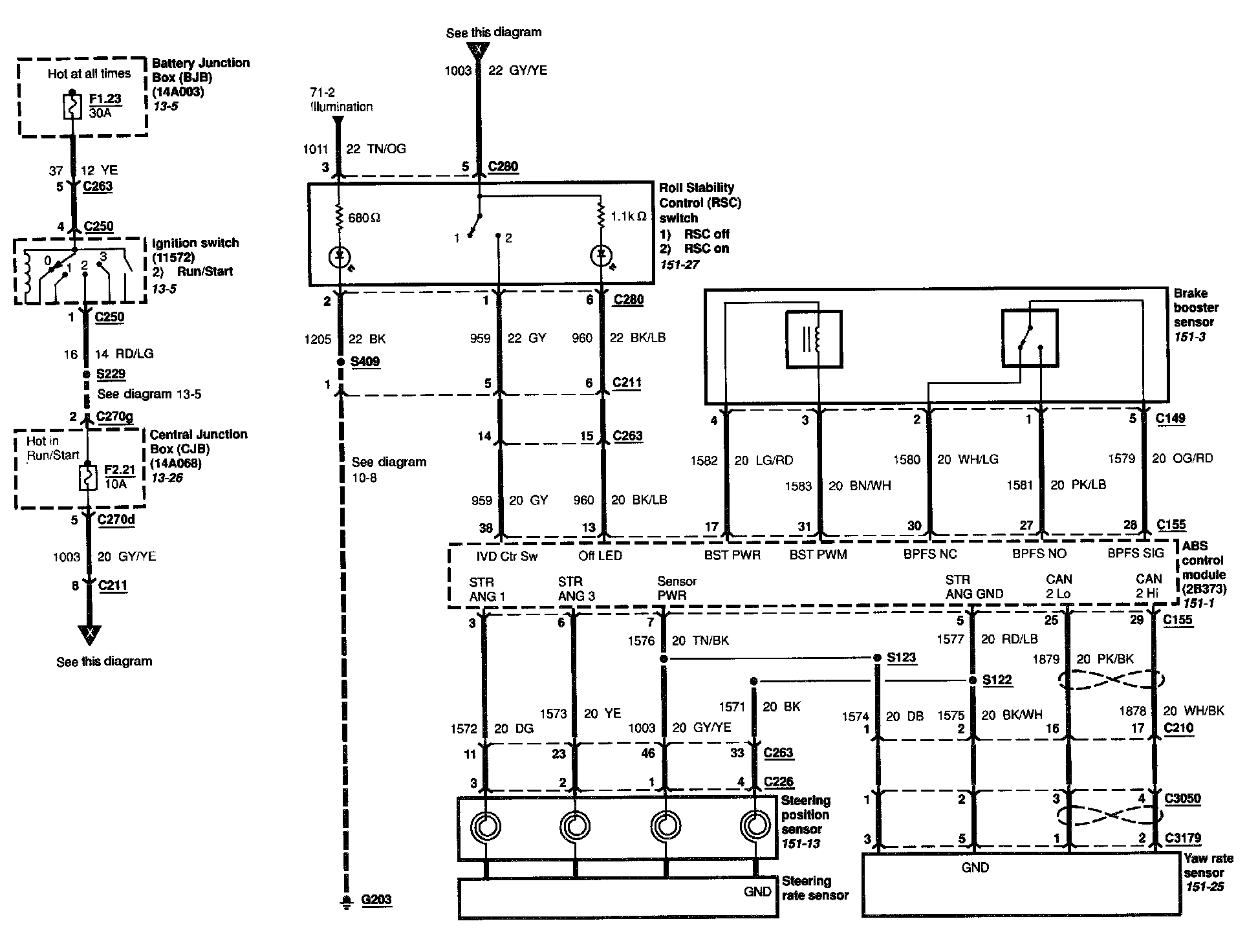 Locations: Location Views (reference numbers starting with 151-) referred to within these diagrams can be found at Component Location Views. Component Location Views