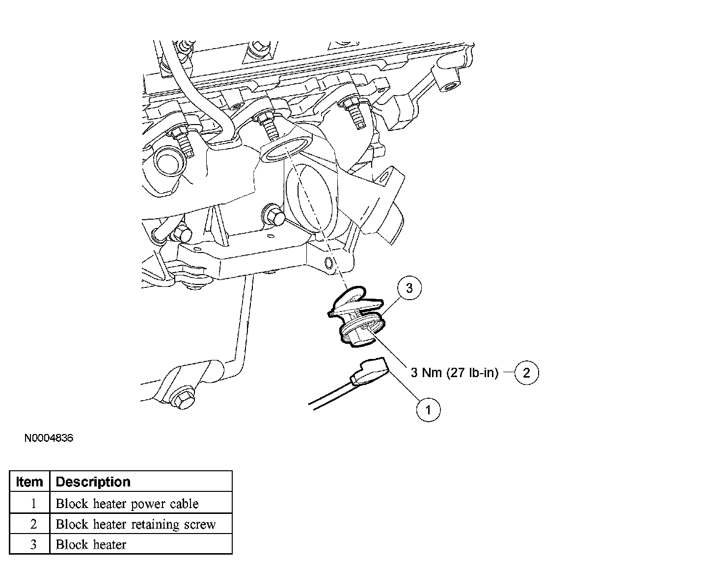 4. NOTE: Do not loosen the block heater retaining screw more than necessary for removal.
