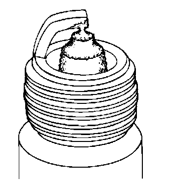 5. Inspect for pre-ignition, identified by melted electrodes and a possibly damaged insulator. Metallic deposits on the insulator indicate engine damage. This may be caused by incorrect ignition timing, wrong type of fuel or the unauthorized installation of a hell-coil insert in place of the spark plug threads.