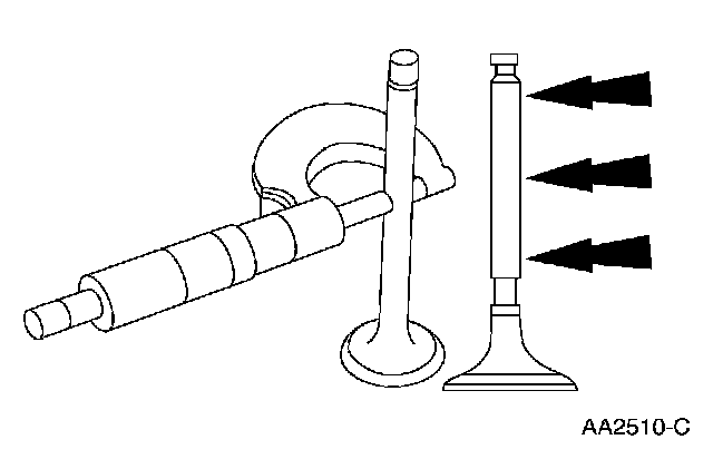 Valve - Stem Diameter1. Measure the diameter of each intake and exhaust valve stem at the points shown. Verify the diameter is within specification.
