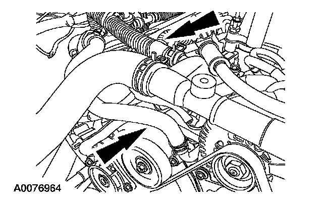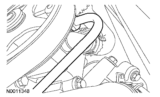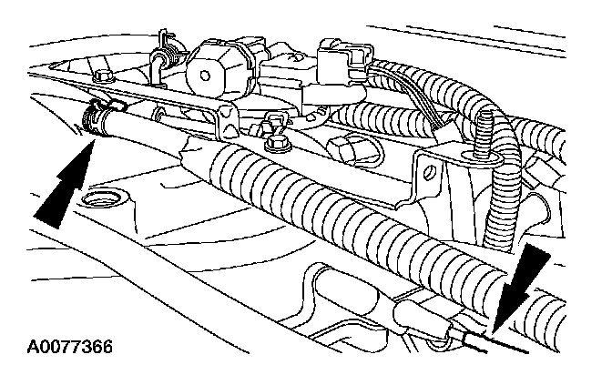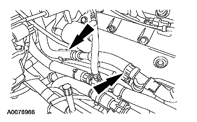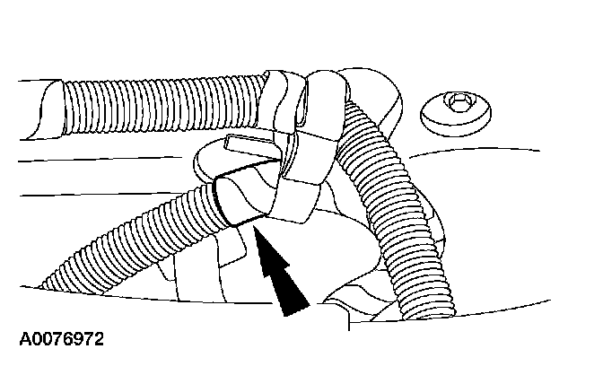 28. Install the coolant hose into the retaining clips on the RH valve cover.