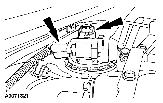 22. Connect the electrical connector and the vacuum hose to the EGR system module.