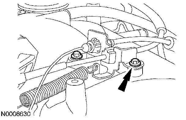 31. Position the accelerator bracket and cables and install the 2 bolts.