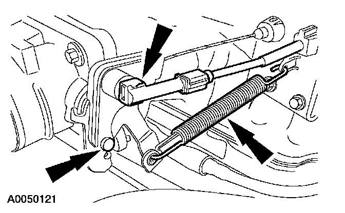 33. Connect the accelerator cable, the speed control cable and the throttle return spring.