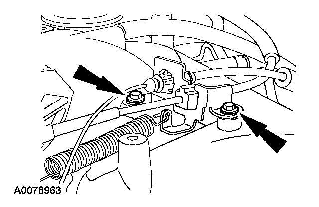12. Remove the 2 bolts and position the bracket and cables aside.