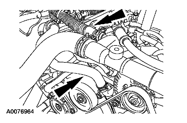13. Disconnect the 2 coolant hoses and position aside.