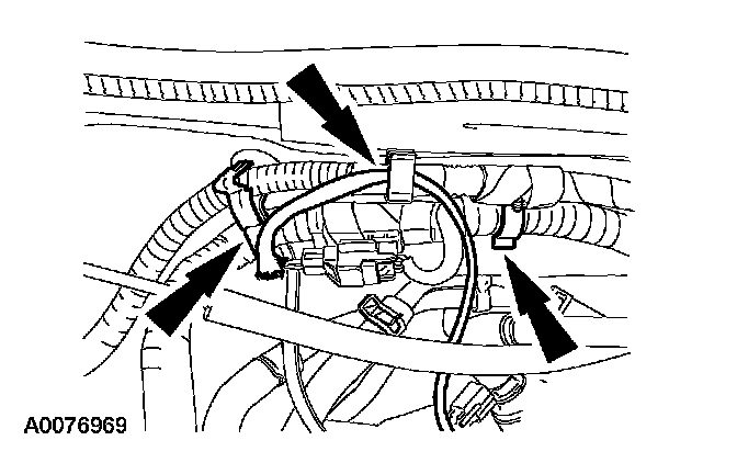 31. Release the battery cable harness pin-type retainers and position the harness aside.