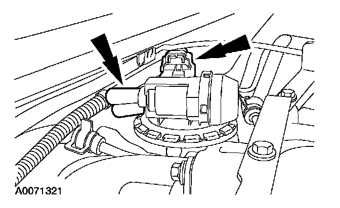 21. Disconnect the electrical connector and the vacuum hose from the exhaust gas recirculation (EGR) system module.
