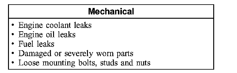 2. Visually inspect for obvious signs of mechanical damage. Refer to the following chart.