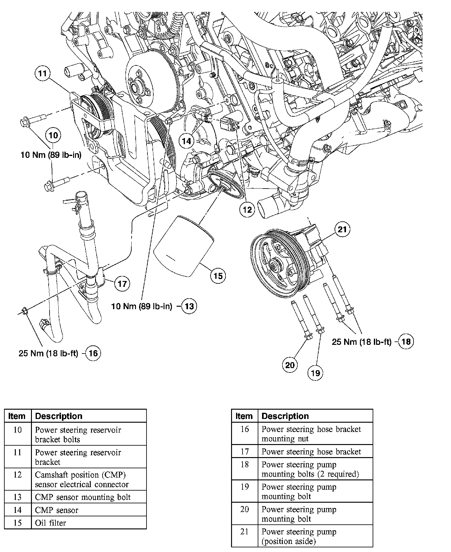 13. Remove the power steering pump mounting bolts and position the power steering pump aside.