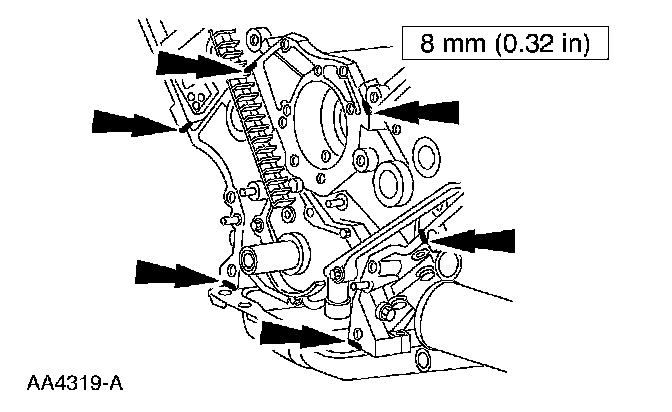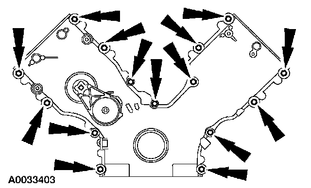 1. NOTE: If the engine front cover is not secured within 4 minutes, the sealant must be removed and the sealing area cleaned with metal surface cleaner. Allow to dry until there is no sign of wetness, or 4 minutes, whichever is longer.