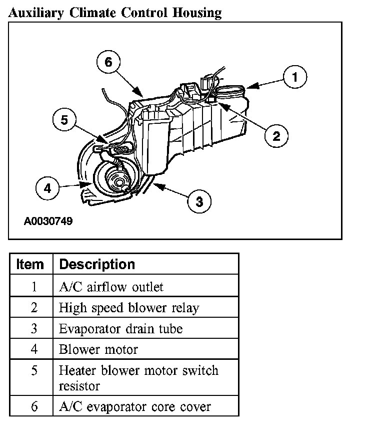 NOTE: The auxiliary evaporator core is not separately serviceable. It is serviced only with the auxiliary climate control housing.