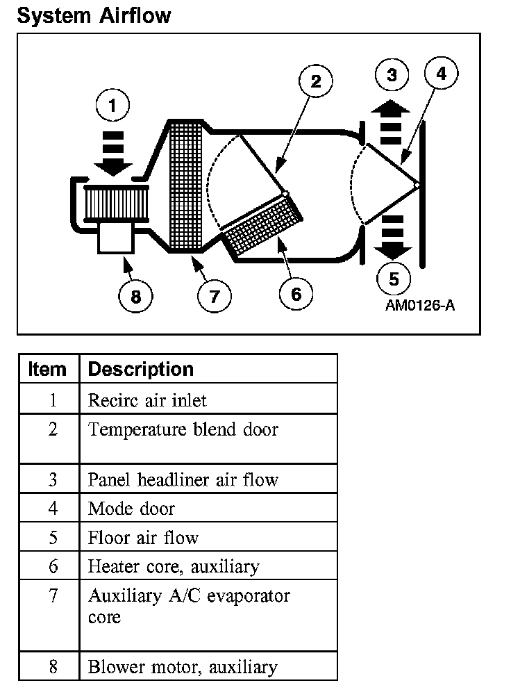 The auxiliary climate control system uses a rear evaporator core which operates in the same manner as the front evaporator core.