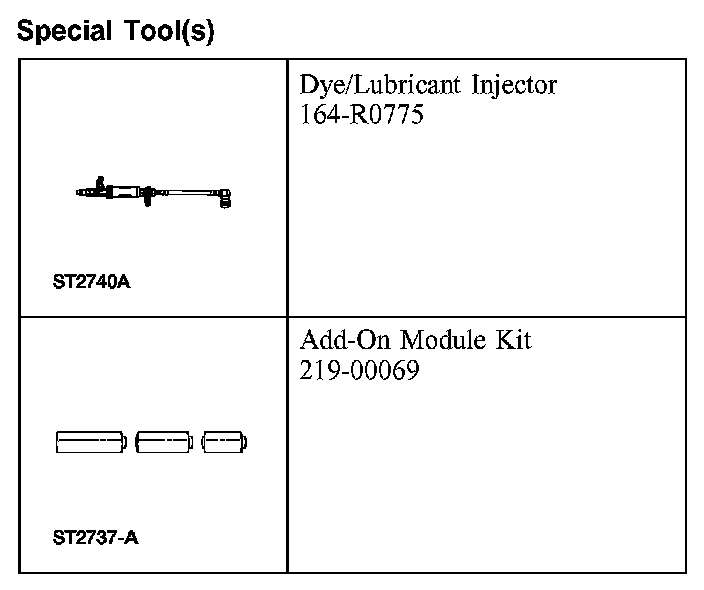 2. Assemble the dye/lubricant injector using the correct adapters to match the amount of PAG oil to be injected.