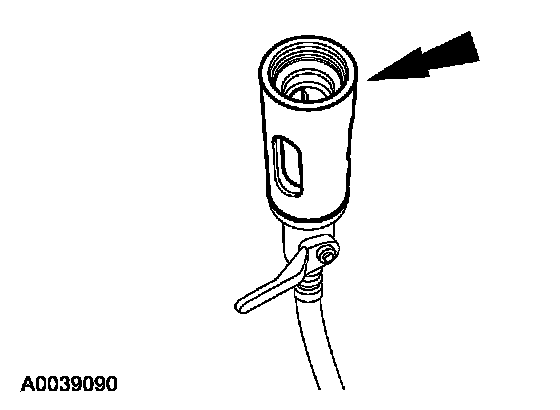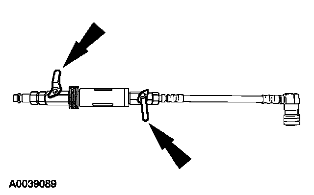 5. Install the dye/lubricant injector between the low-side service gauge port valve and the refrigerant service station or manifold gauge set.