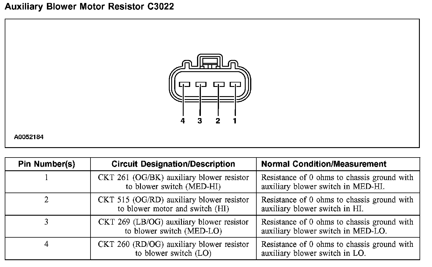 Auxiliary Blower Motor Resistor C3022: