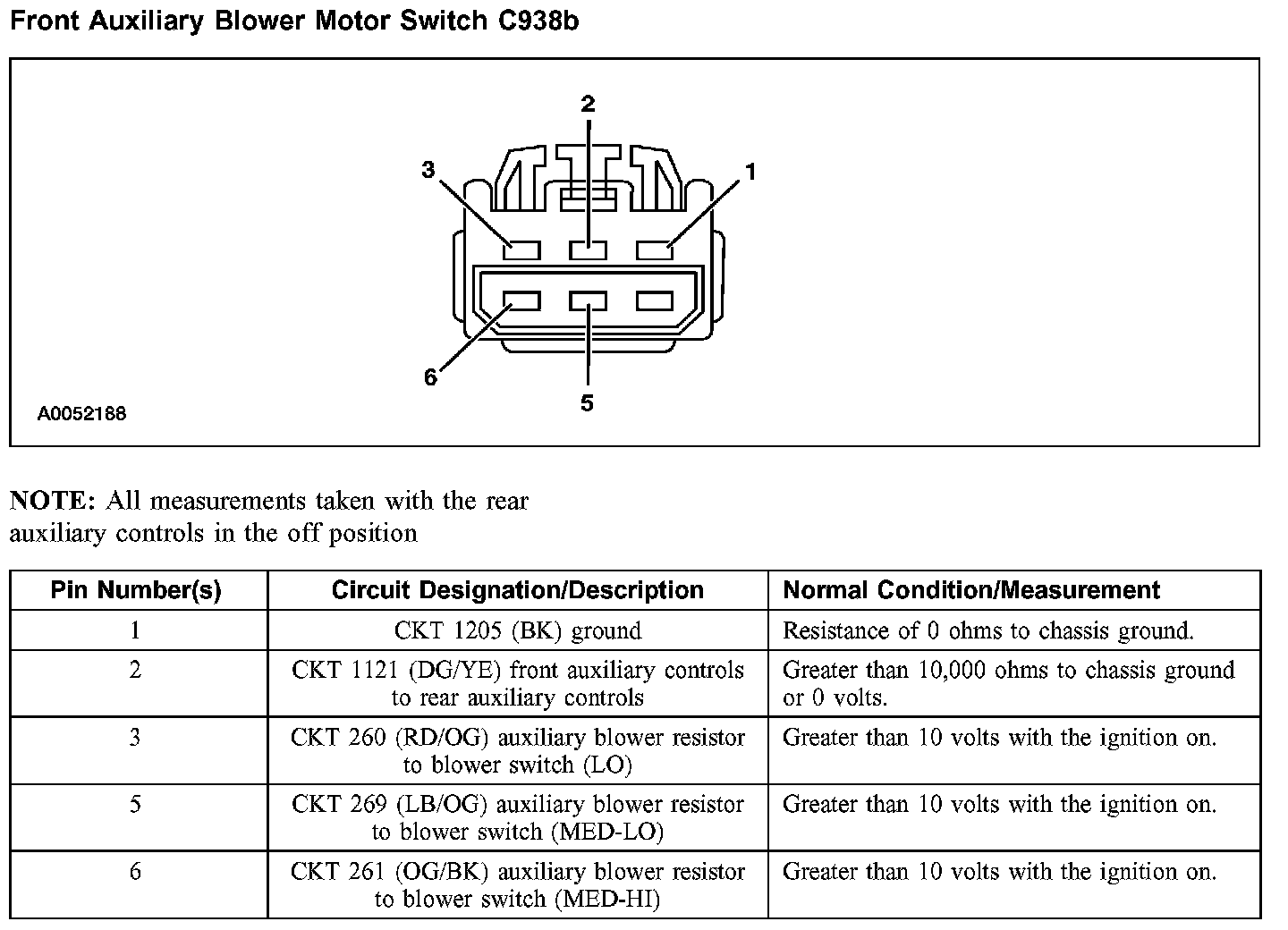 Front Auxiliary Blower Motor Switch C938b: