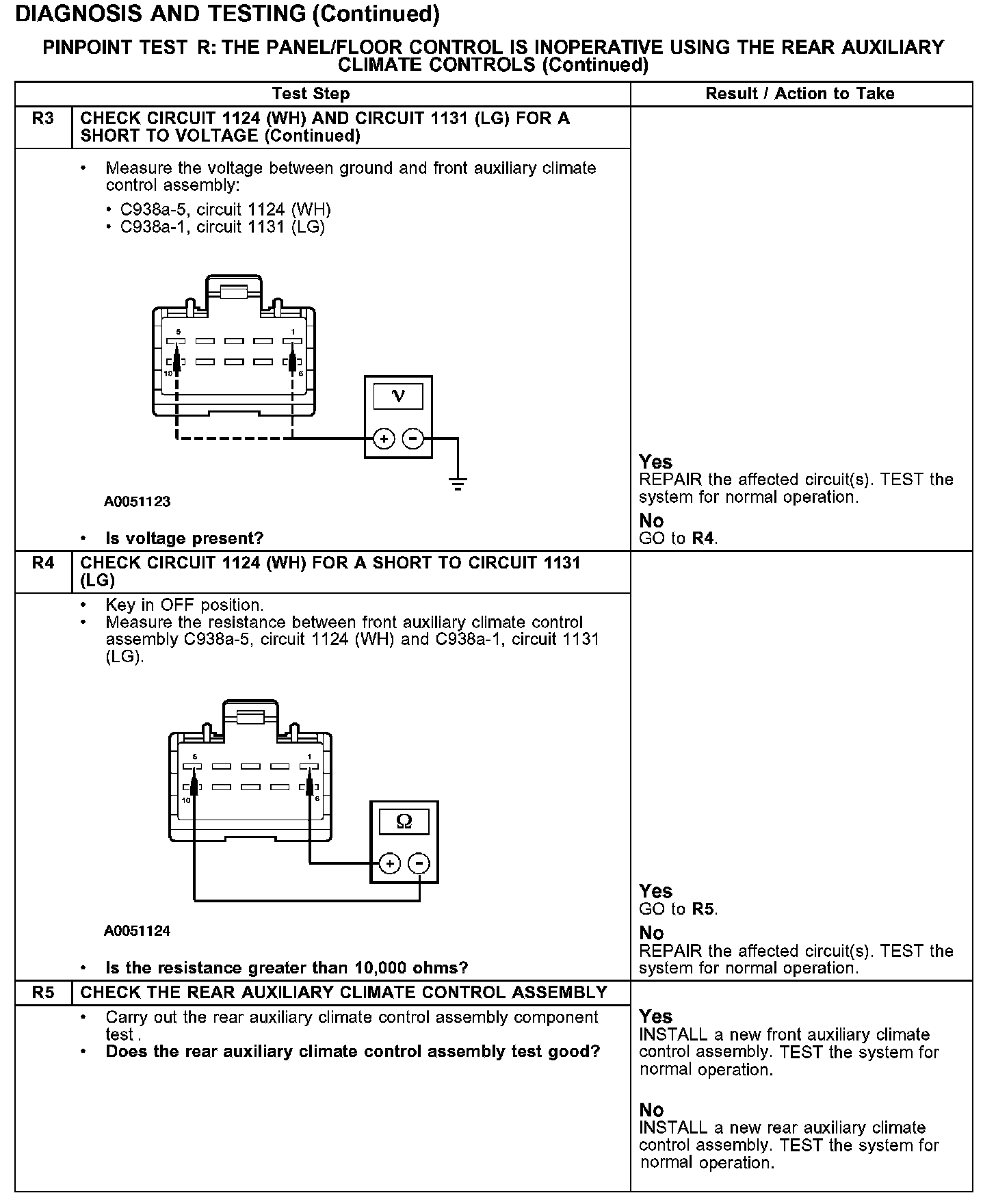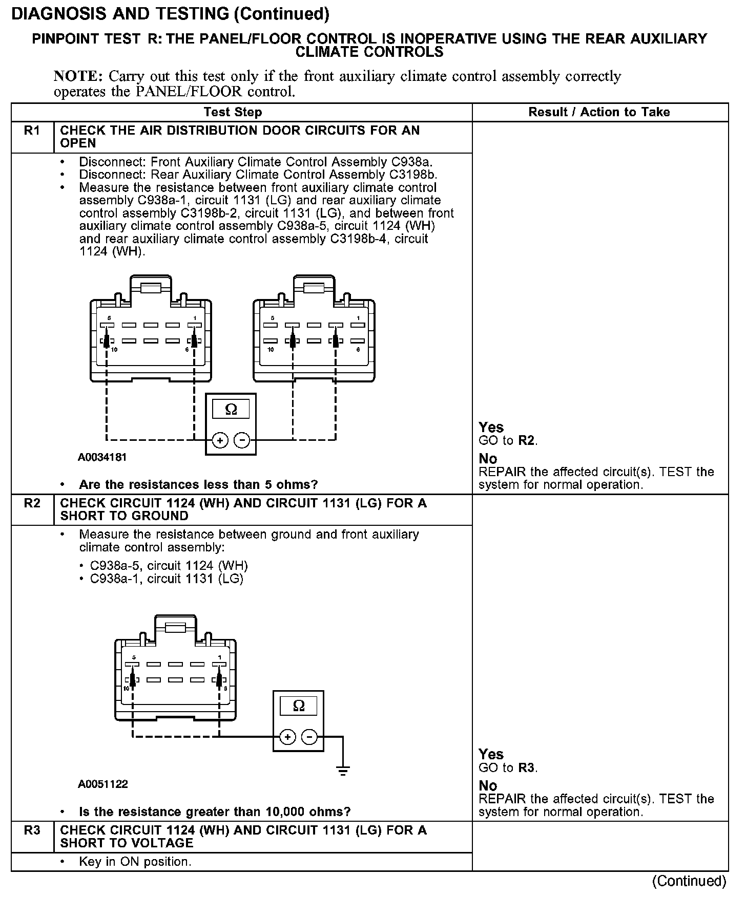 PINPOINT TEST R: THE PANEL/FLOOR CONTROL IS INOPERATIVE USING THE REAR AUXILIARY CLIMATE CONTROLSR1-R3: