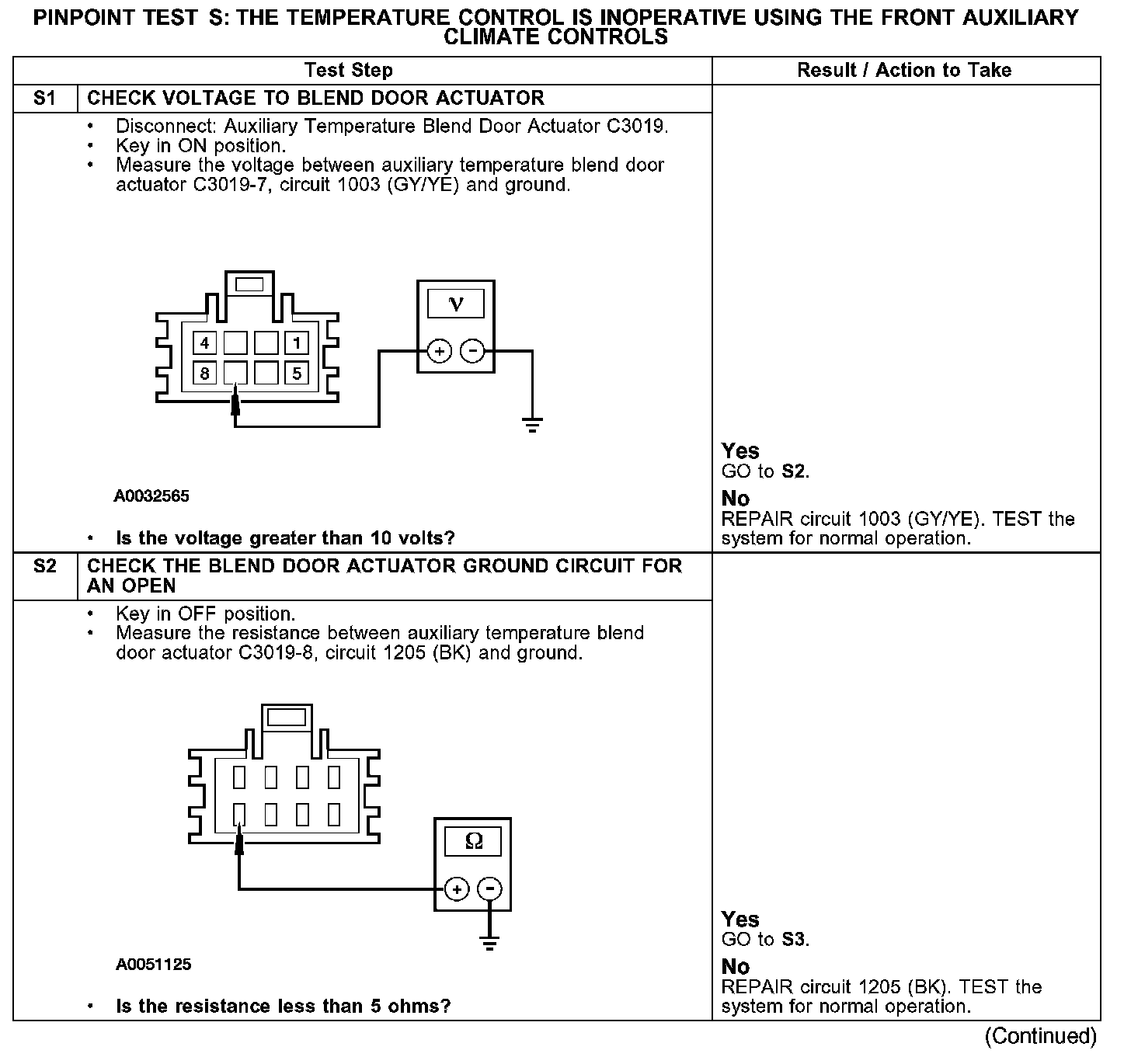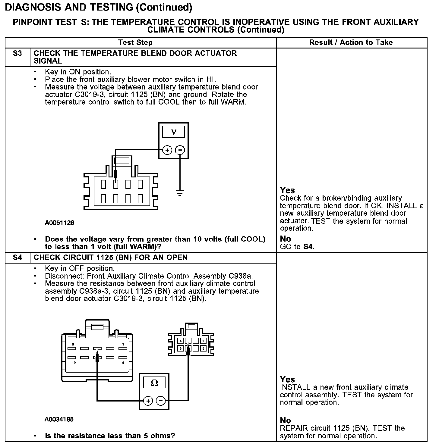 PINPOINT TEST S: THE TEMPERATURE CONTROL IS INOPERATIVE USING THE FRONT AUXILIARY CLIMATE CONTROLSS1-S2:
