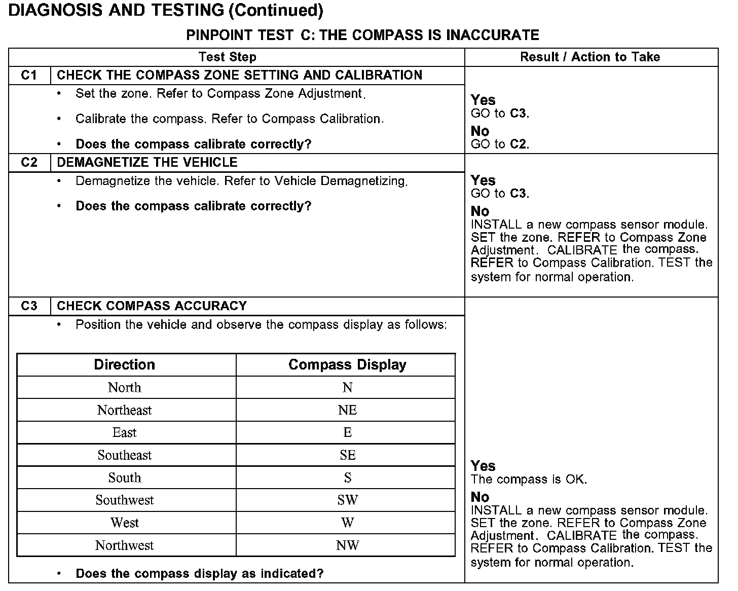 PINPOINT TEST C: THE COMPASS IS INACCURATEC1-C3: