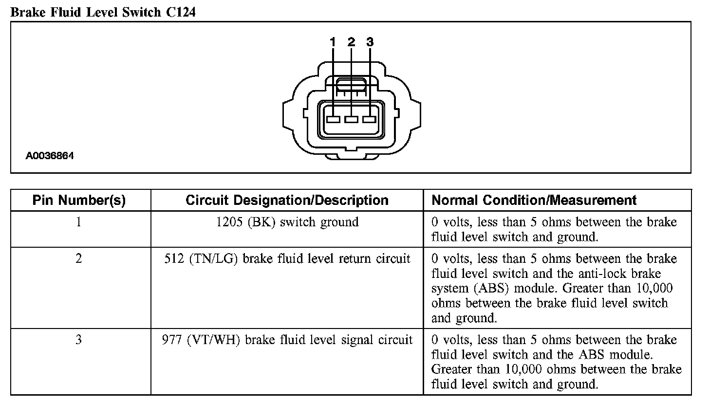 Brake Fluid Level Switch C124: