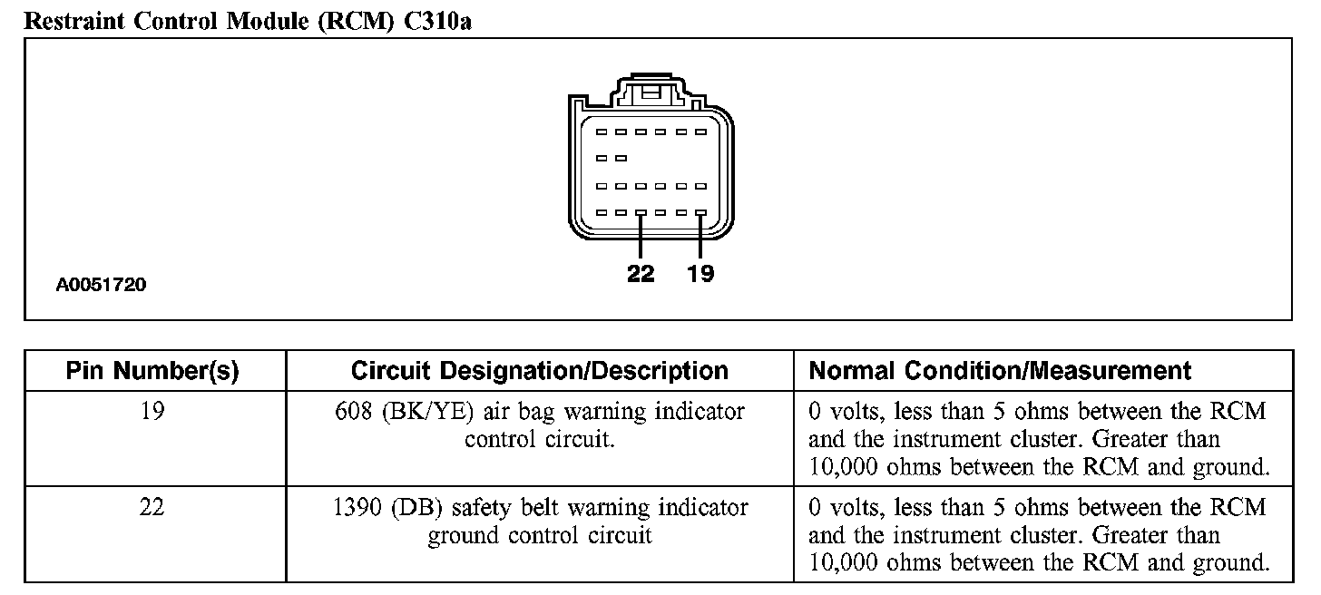 Restraint Control Module (RCM) C310a: