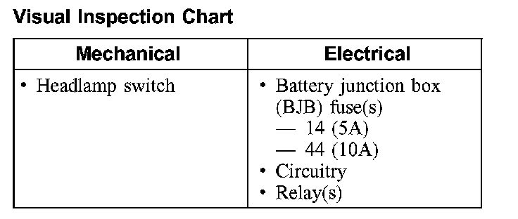 4. If the fog lamps are on continuously (late build), make sure the DRL system is operating correctly. Refer to Daytime Running Lamp for diagnosis.