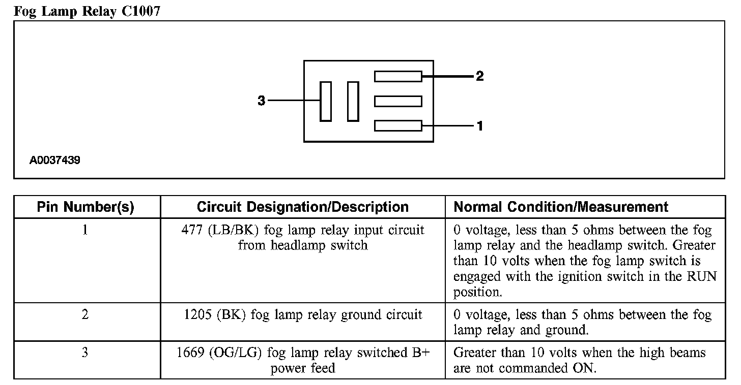 Fog Lamp Relay C1007: