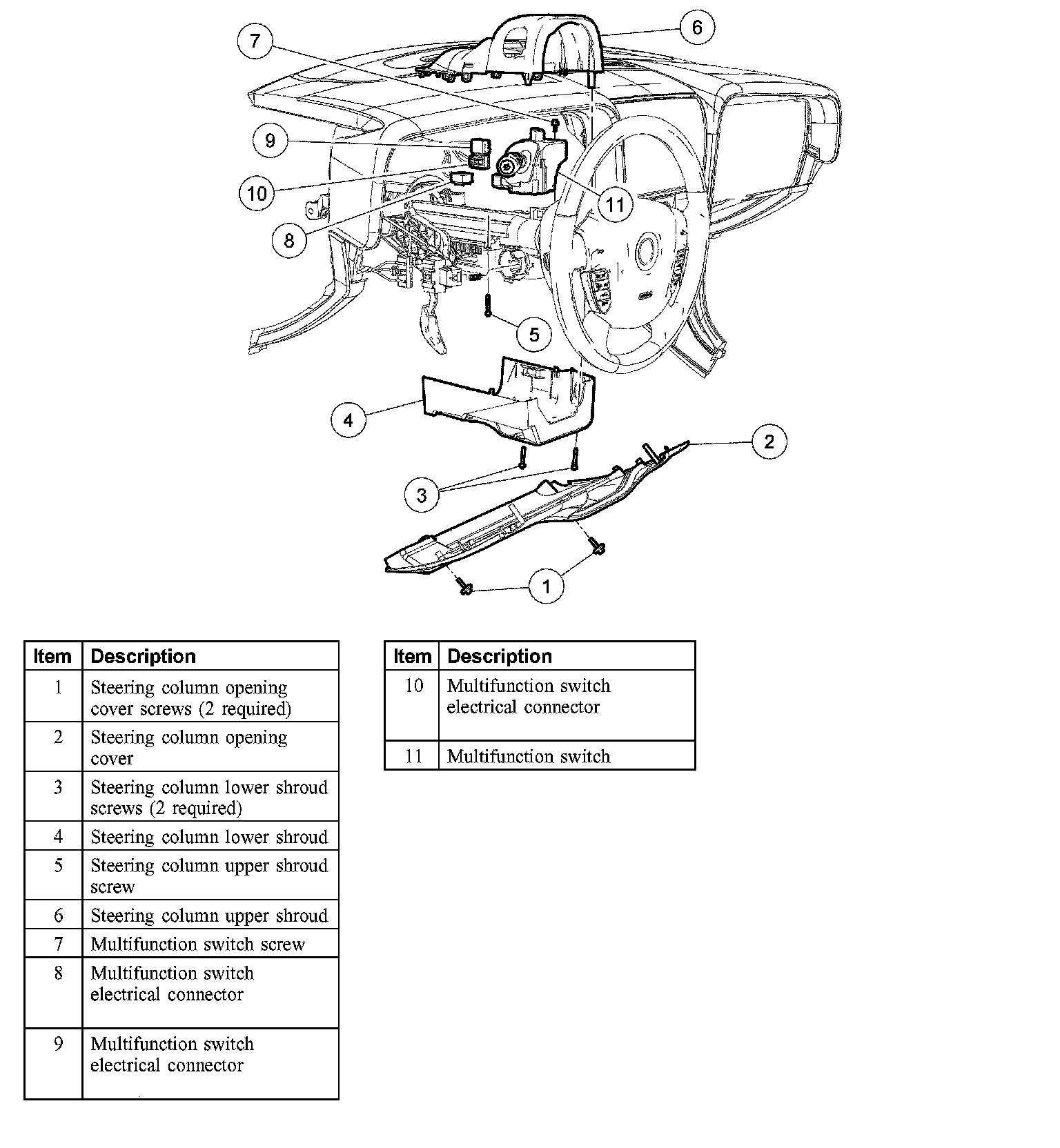 1. Release the retaining clips and rotate the upper steering column trim panel out of the instrument panel.