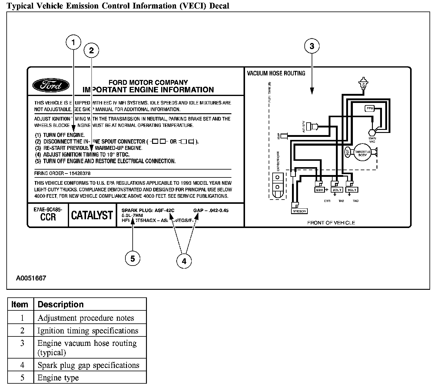 Typical Vehicle Emission Control Information (VECI) Decal:
