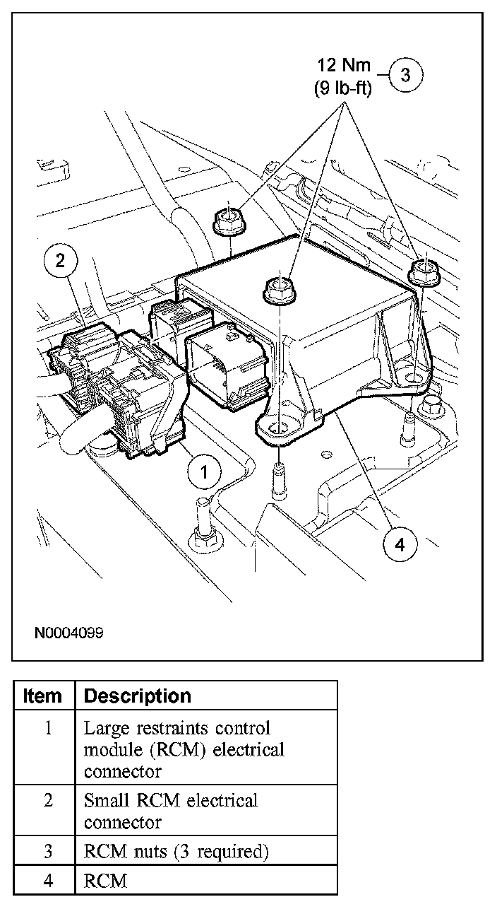 - The tightening torque of the air bag restraints control module (RCM) retaining nuts is critical for correct system operation.