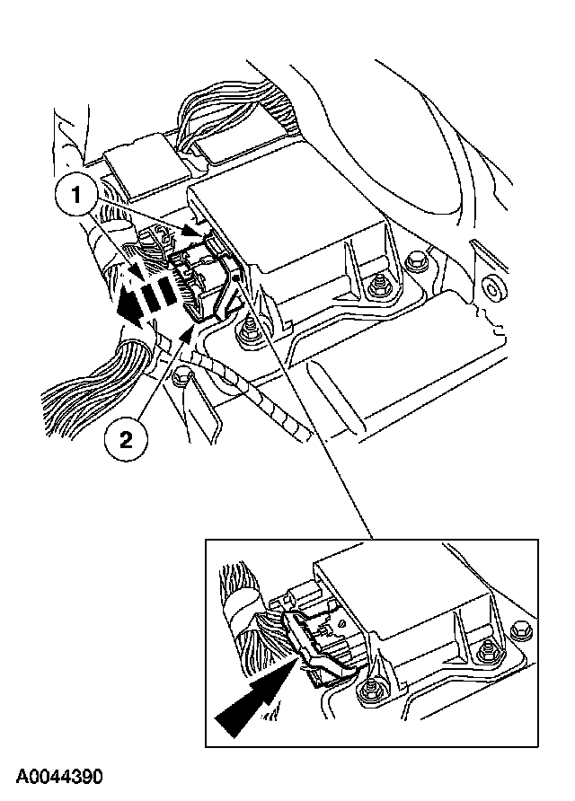 - Do not handle, move or change the original horizontal mounting position of the restraints control module (RCM) while the RCM is connected and the ignition switch is ON. Failure to follow these instructions may result in the inadvertent deployment of the safety canopy and risk of personal injury.