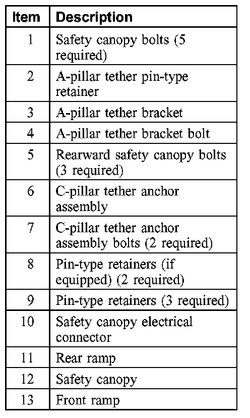 - Before installing a safety canopy module, inspect the roofline for any damage. If necessary, the sheet metal must be reworked to its original condition and structural integrity. All damaged fasteners must be replaced and any foreign objects removed. Failure to do so may result in personal injury in the event of a safety canopy deployment.