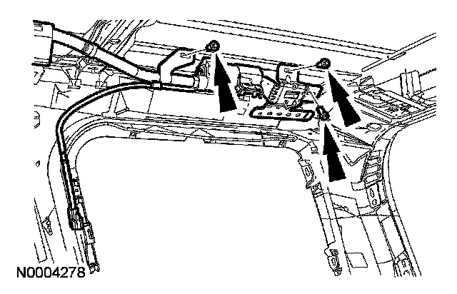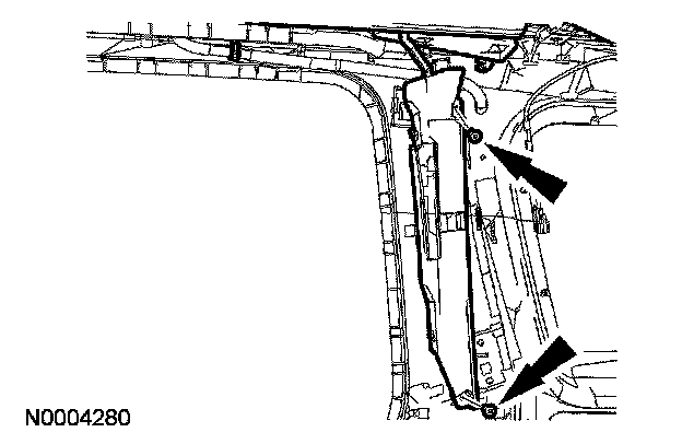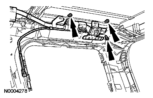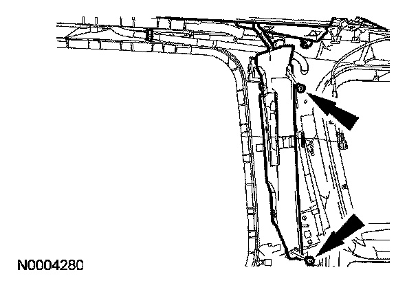 6. Remove the 2 C-pillar tether anchor assembly bolts.
