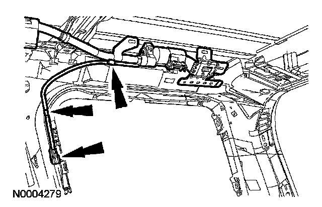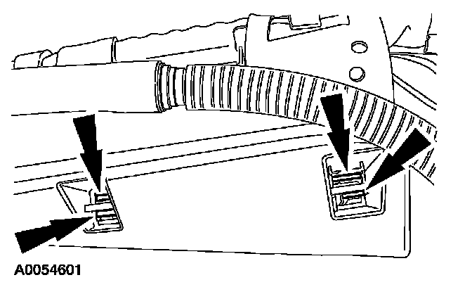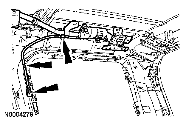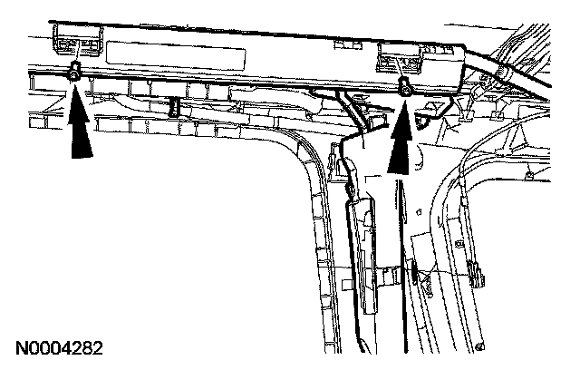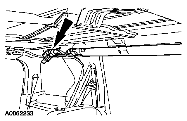 14. If reusing the same safety canopy, separate the A-pillar tether from the pin-type retainer. If a new safety canopy is being installed, remove the A-pillar tether with the pin-type retainer.