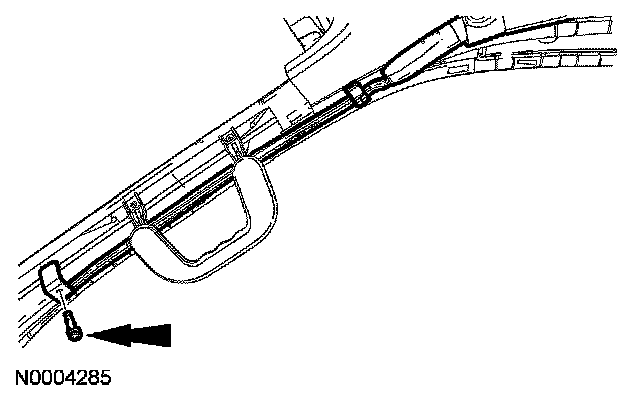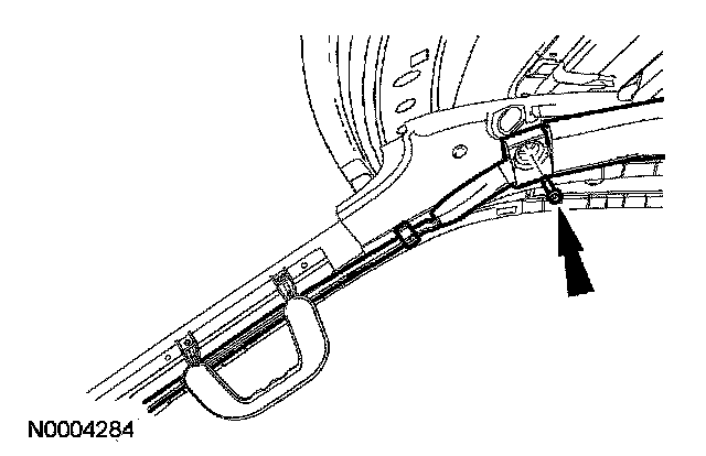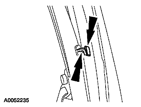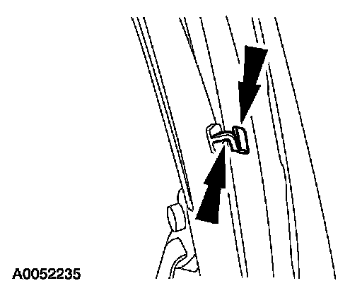 5. If reusing the same safety canopy, route the A-pillar tether through the pin-type retainer. If a new safety canopy is being installed, install the A-pillar tether and pin-type retainer to the A-pillar.