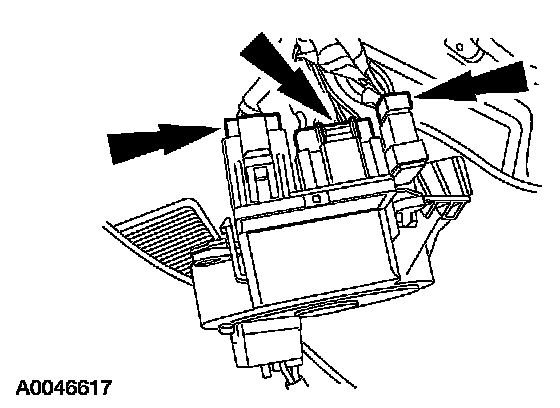 - Remove the 3 clockspring mounting bracket screws and discard the clockspring mounting bracket if damaged.