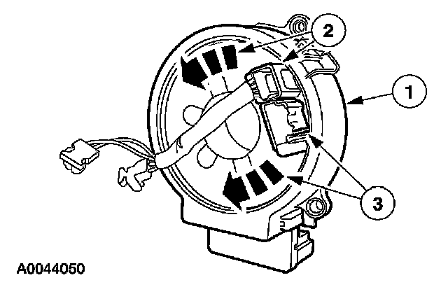 3 Turn the clockspring rotor clockwise approximately 3 turns. This is the center point of the clockspring. Do not allow the clockspring rotor to turn from this position.