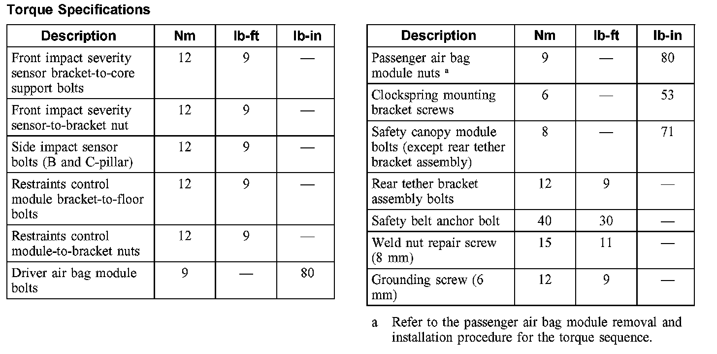 Air Bag Systems: Specifications