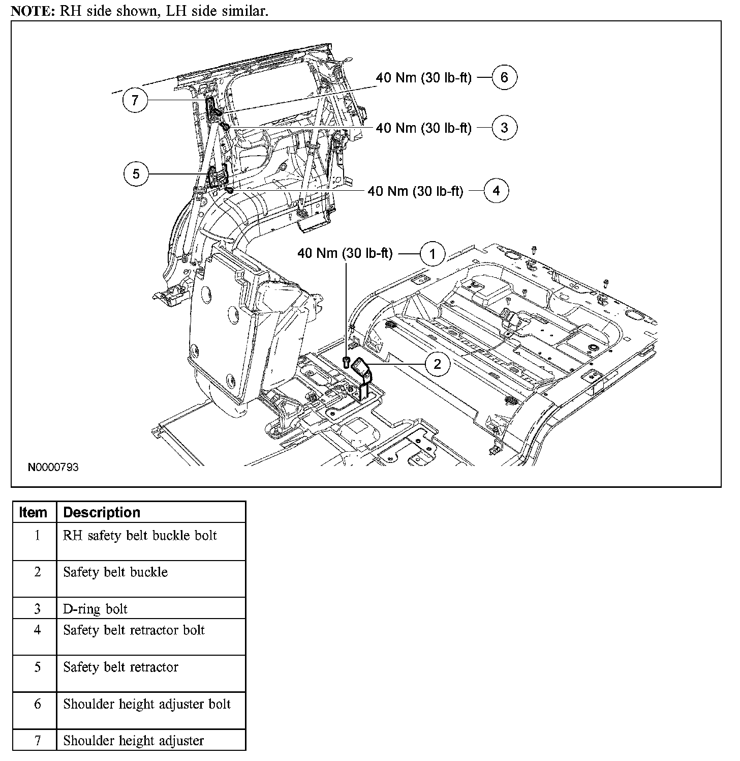 SAFETY BELT SYSTEM - EXPLODED VIEW, SECOND ROW, BUCKET SEAT
