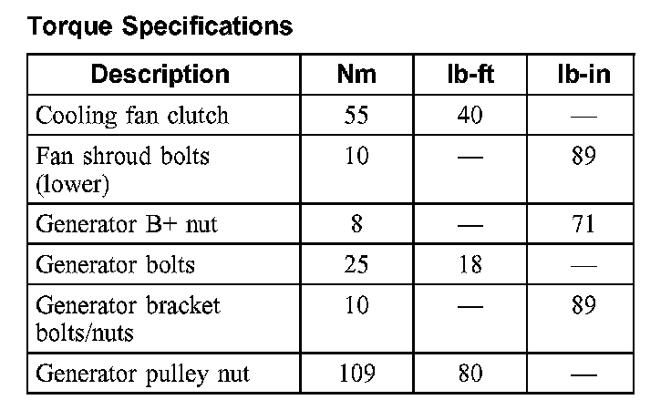 Torque Specifications: