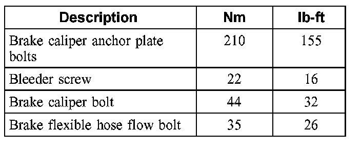 Torque Specifications: