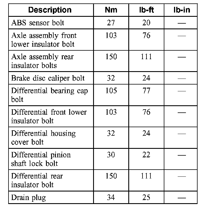 Torque Specifications