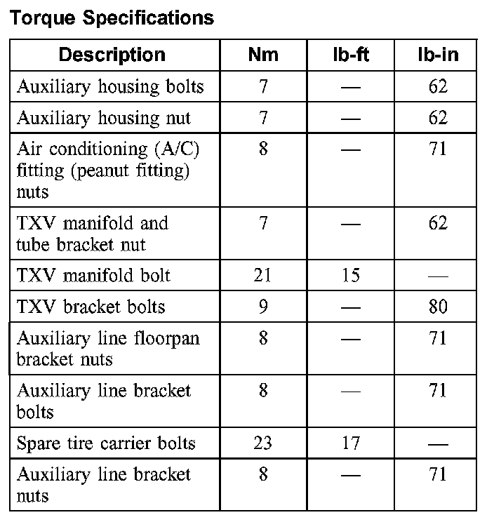 Torque Specifications: