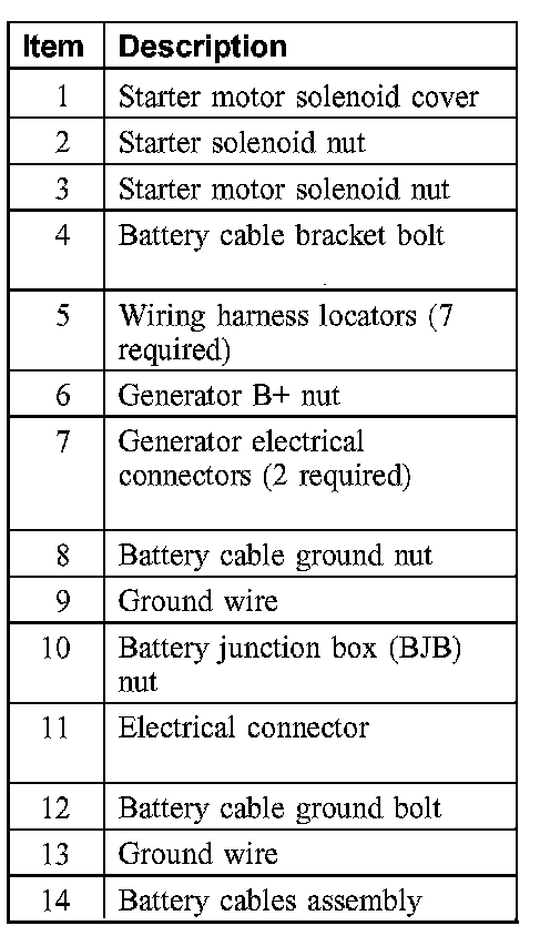 14. Remove the battery cables assembly.
