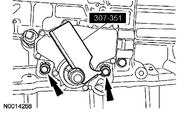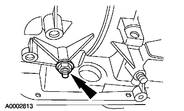 In order to correctly install the special service tool, it must be installed using 1 round and 1 oblong hole. Using 2 oblong holes will cause damage to the transmission.